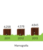As unidades de imagem seguiram com crescimento no volume de exames, resultado de um esforço das equipes médicas e administrativas para otimização das agendas. A unidade Shopping Total teve seu horário de atendimento estendido até 22h para exames de ecografia e raios X devido à demanda. Os exames tomográficos cresceram 34% em relação ao ano anterior, seguidos pelos exames de ecografias que cresceram 13,8%. A unidade Moinhos mantém aumento de procura por todos os exames, apresentando crescimento de 19,49% em mamografia, 10,7% em Densitometrias Ósseas e 8,7% em ecografias.
